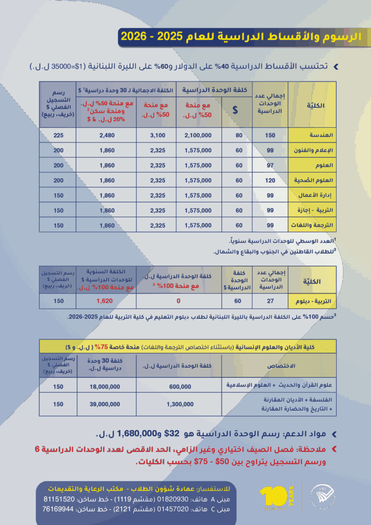 برامج تعليمية بكليّة الأديان في جامعة المعارف – لبنان