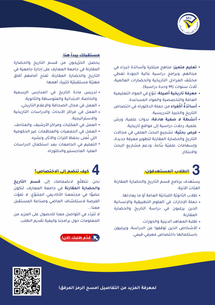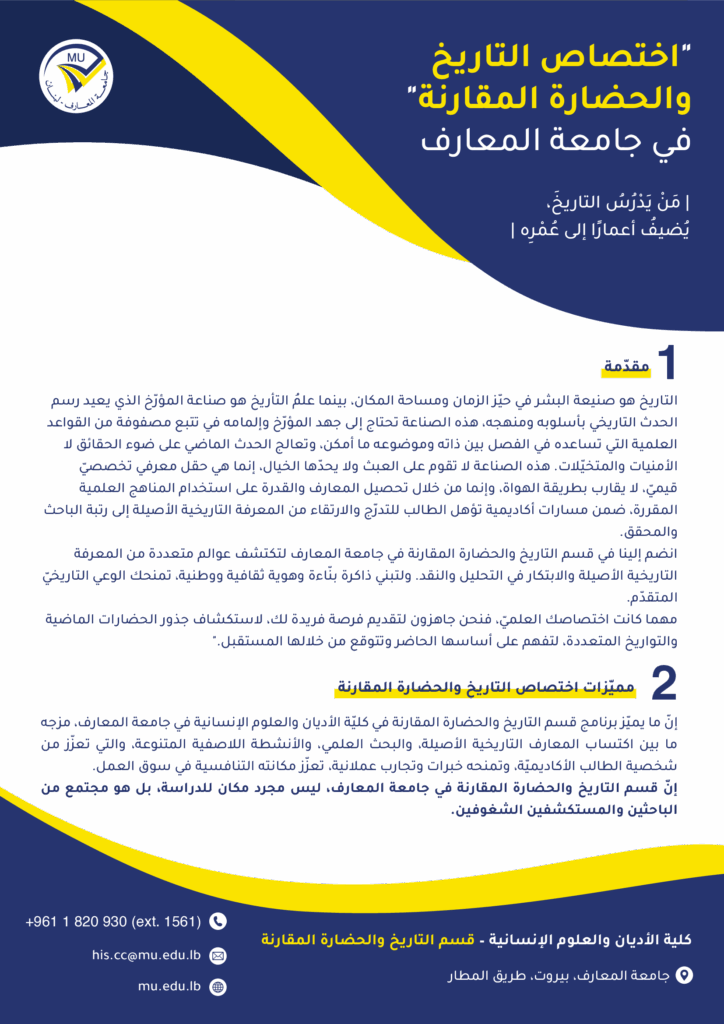 برامج تعليمية بكليّة الأديان في جامعة المعارف – لبنان