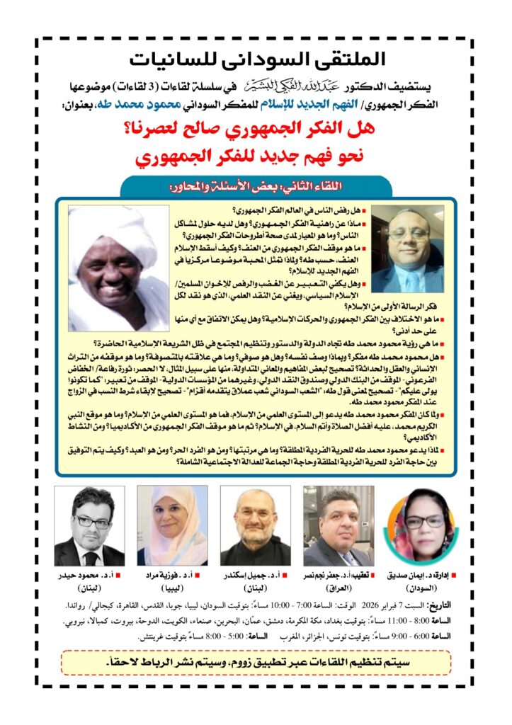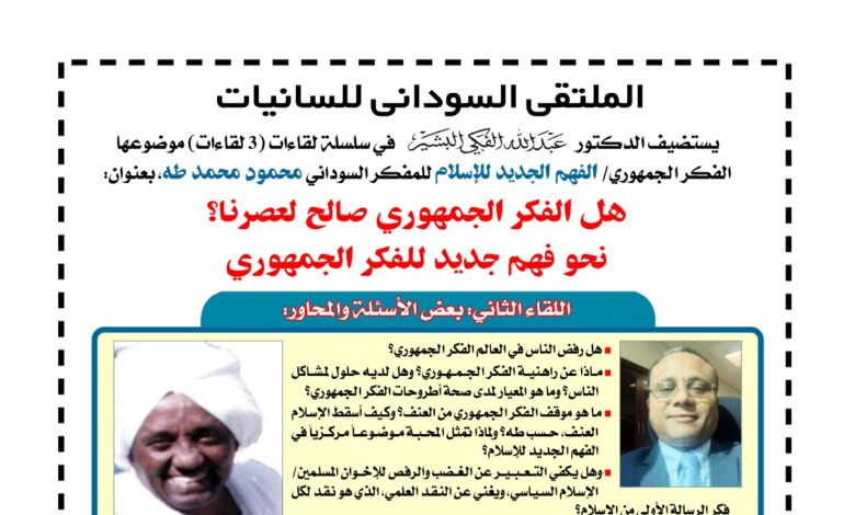 حول الفكر الجمهوري/ الفهم الجديد للإسلام للمفكر السوداني محمود محمد طه، اللقاء الثاني بعنوان:
